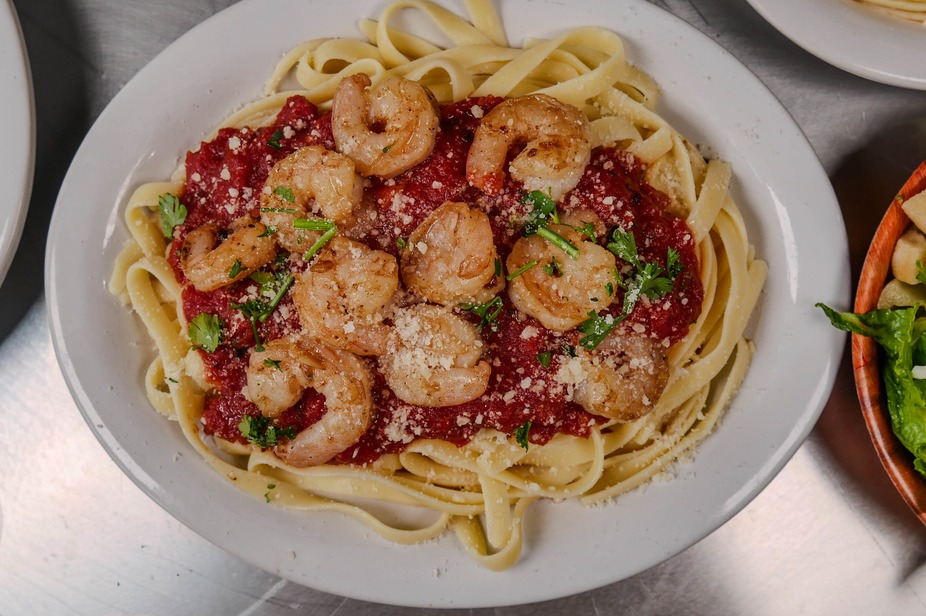 - Capellini Shrimp Marinara, salad, and 20oz. tea. - $12 - Focaccia Turkey or Ham & Cheese, pasta salad, and 20oz. tea. - $12
